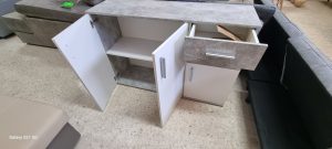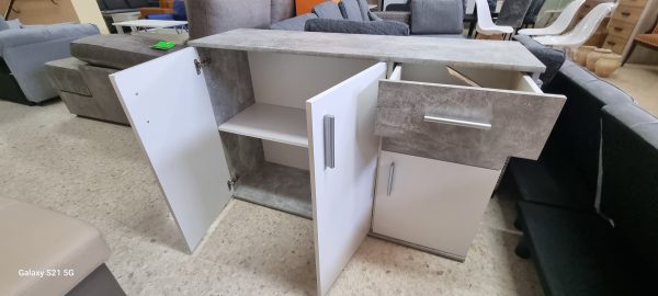 Mucho espacio para guardar cosas: este aparador con distintas puertas y cajones ofrece espacio para guardar todo tipo de cosas; los tiradores de plástico con acabado en aluminio completan el producto y crean un ambiente hogareño