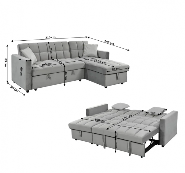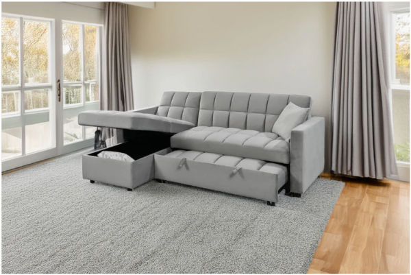 Sofá Cama Chaise Longue Reversible, la fusión perfecta de estilo moderno y funcionalidad inteligente. Este sofá no solo ofrece asientos espaciosos y un diseño elegante, sino que también se transforma en una cama acogedora en cuestión de segundos.