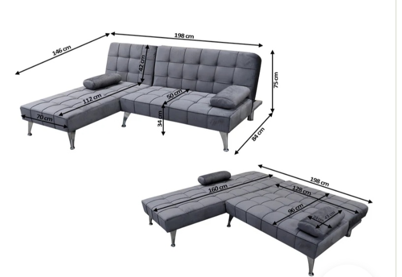 Alto: 75 cmLargo: 198 cmAncho Chaise: 146 cm