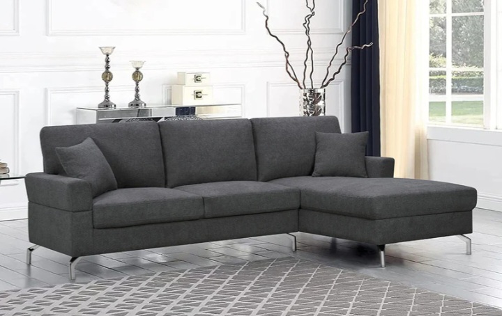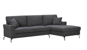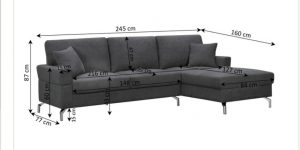 Sofa Chaise Longue Ellen 245cm Añade un toque de elegancia y comodidad a tu hogar con nuestro Sofá Chaise Longue en Gris Oscuro. Este sofá combina un diseño moderno con la máxima funcionalidad, perfecto para cualquier sala de estar. Las patas metálicas aportan un toque contemporáneo y garantizan una estabilidad y durabilidad excepcionales. La chaise longue ofrece un espacio extra para estirarte y relajarte, convirtiéndose en el lugar favorito de la casa. Su tapizado en gris oscuro no solo es elegante sino también fácil de combinar con cualquier estilo de decoración. Fabricado con materiales de alta calidad, asegura un confort duradero. Tela tapicero, 80% poliester y 15% algodón, este sofá es agradable al tacto y tiene una firmeza media. ¡Transforma tu espacio con este sofá chaise longue que aúna estilo, confort y funcionalidad! Medidas: Largo: 245 cm Ancho Chaise: 160 cm Ancho: 77 cm Alto: 87 cm