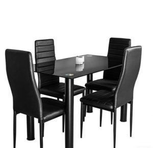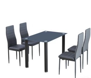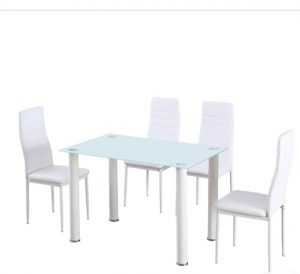 Mesa de Cristal Templado + 4 Sillas Polipiel. Comedor o Cocina