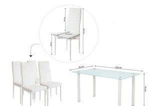 Este conjunto de Mesa + 4 Sillas en polipiel es la eleccion perfecta para cualquier hogar que busque una combinacion de belleza, durabilidad y funcionalidad. La mesa de cristal templado es un mueble de alta calidad que se caracteriza por su resistencia y durabilidad. Su superficie de vidrio es facil de limpiar y no se raya facilmente, lo que facilita el mantenimiento de la mesa.